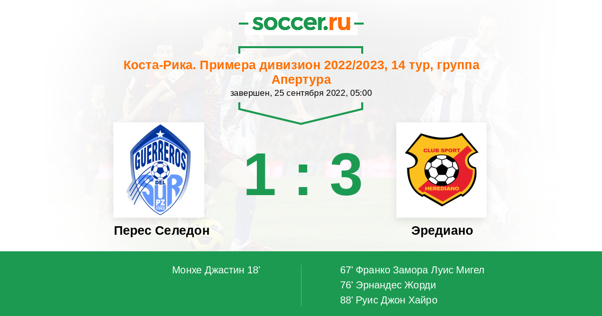 Зеледон - Эредиано: обзор матча 25 сентября 2022