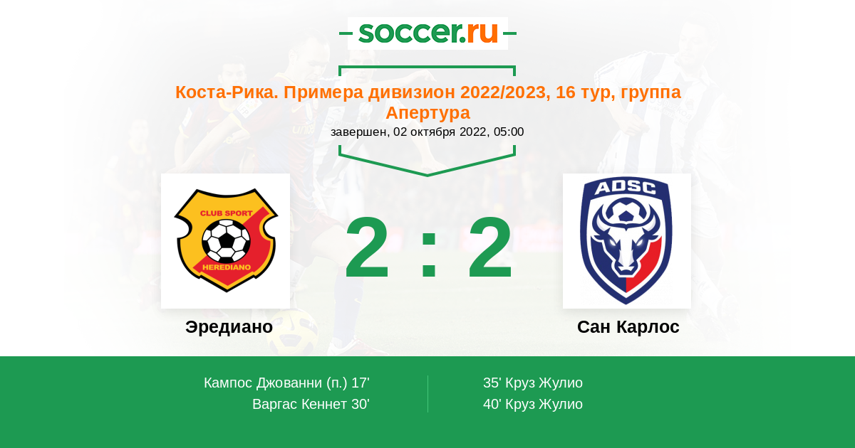 Эредиано - Сан Карлос: обзор матча 2 октября 2022