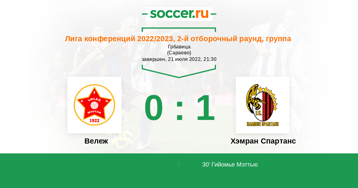 Вележ - Хэмран Спартанс: обзор матча 21 июля 2022