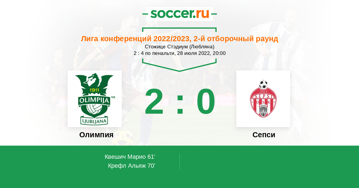 Олимпия - Сепси: обзор матча 28 июля 2022
