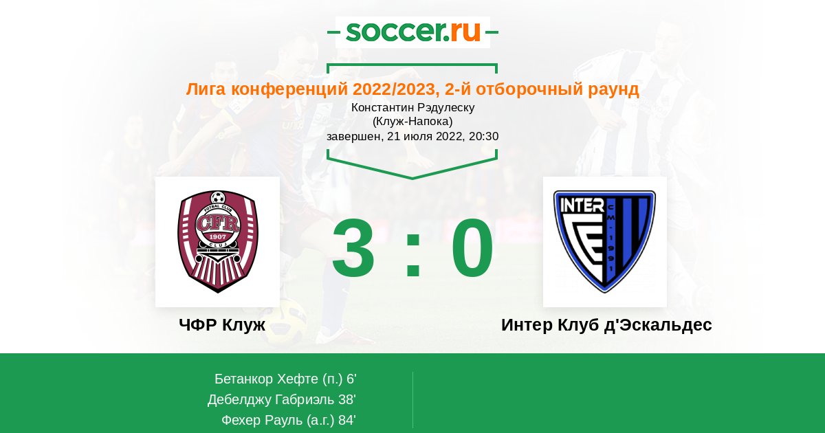 ЧФР Клуж - Интер Клуб д'Эскальдес: обзор матча 21 июля 2022