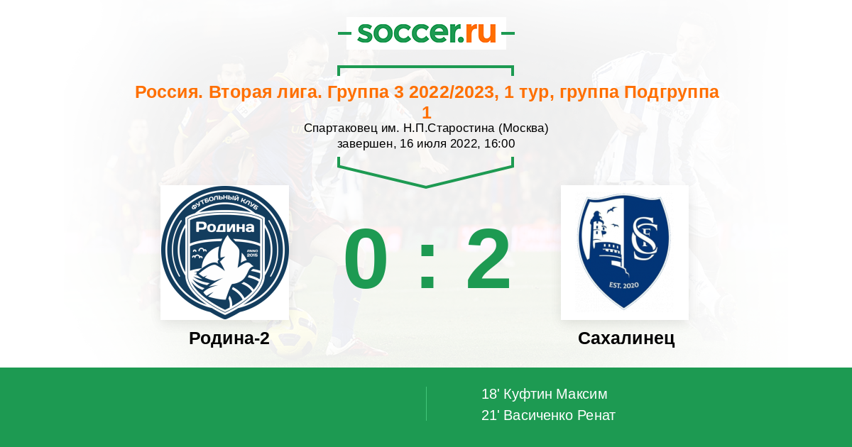 Родина-2 - Сахалинец: обзор матча 16 июля 2022