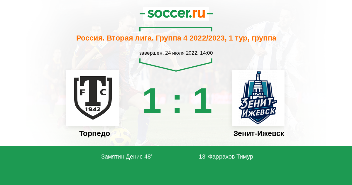 Торпедо - Зенит-Ижевск: обзор матча 24 июля 2022