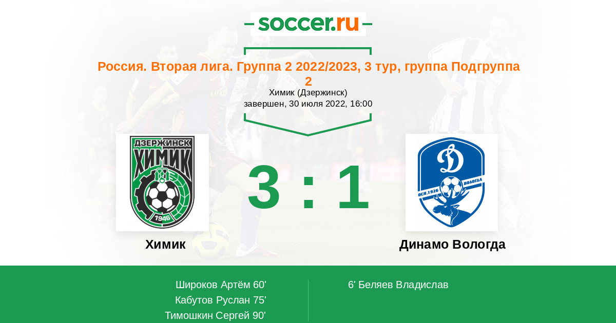 Химик - Динамо Вологда: обзор матча 30 июля 2022