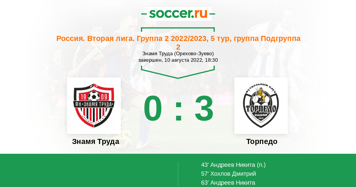 Знамя Труда - Торпедо: обзор матча 10 августа 2022