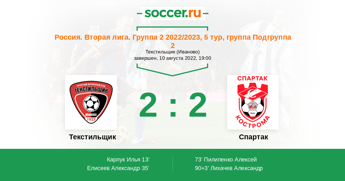 Текстильщик - Спартак Кострома: обзор матча 10 августа 2022