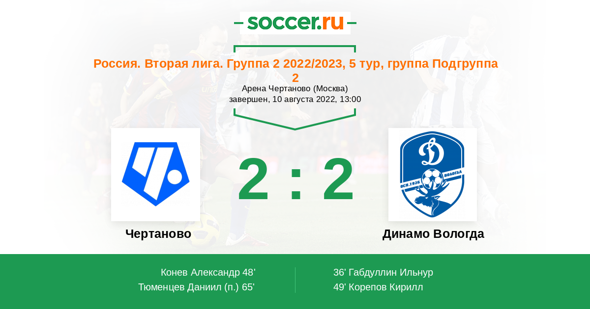 Чертаново - Динамо Вологда: обзор матча 10 августа 2022