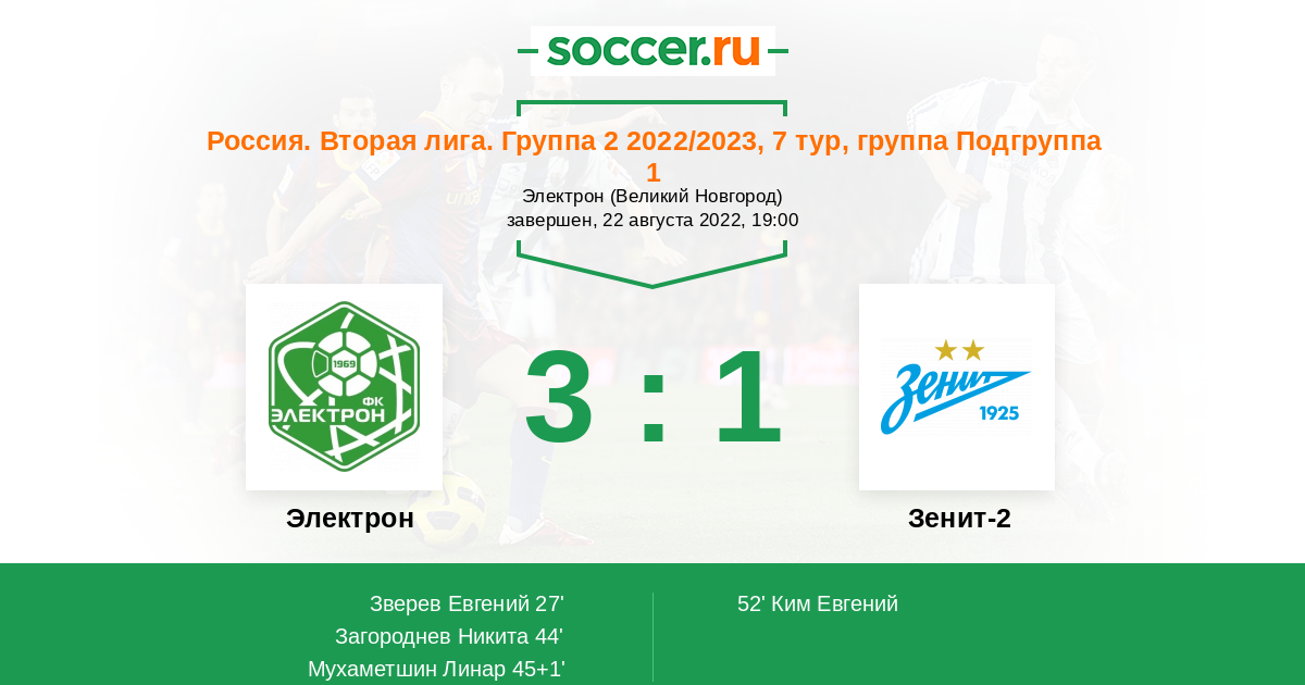 Электрон - Зенит-2: обзор матча 22 августа 2022