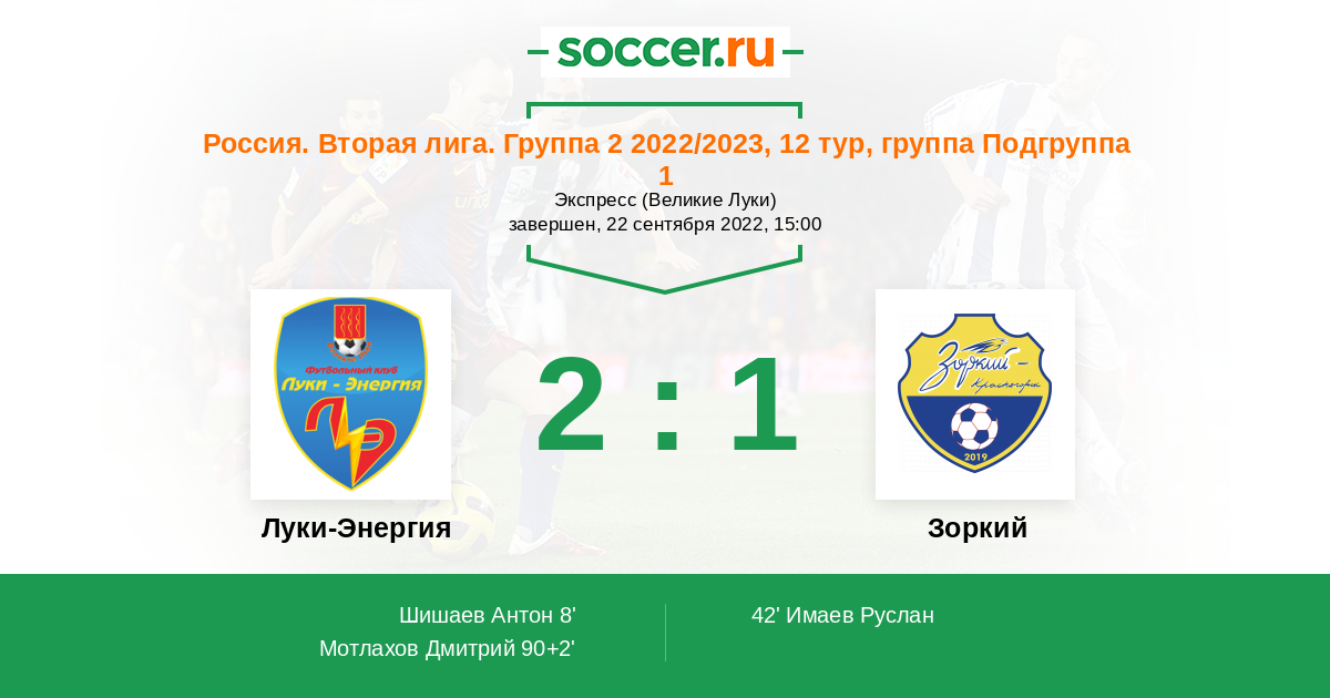 Луки-Энергия - Зоркий: обзор матча 22 сентября 2022