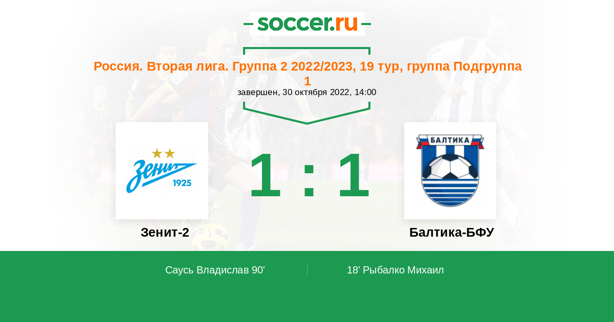 Зенит-2 - Балтика-БФУ: обзор матча 30 октября 2022