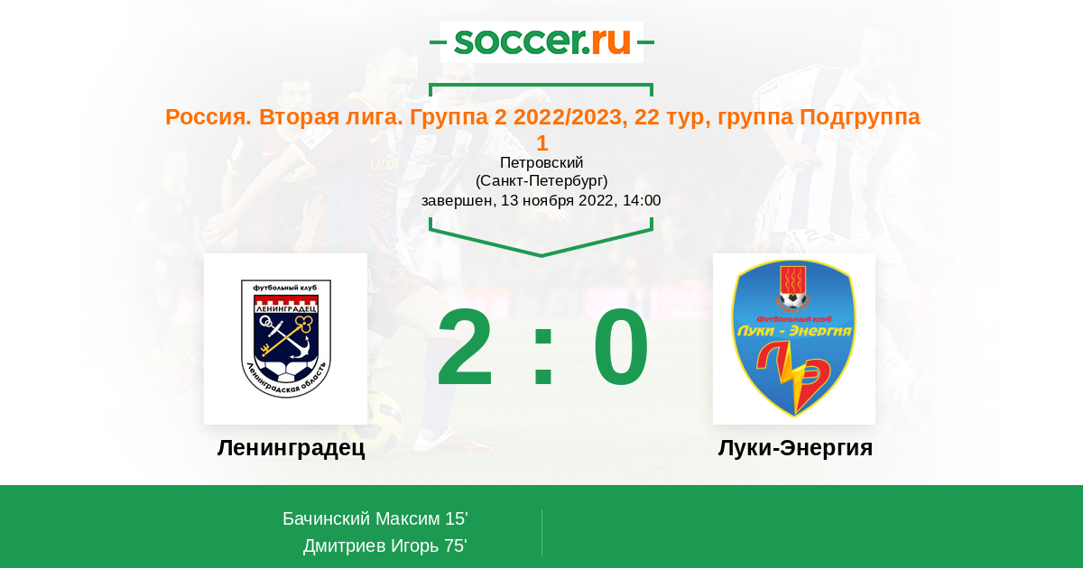 Ленинградец - Луки-Энергия: обзор матча 13 ноября 2022