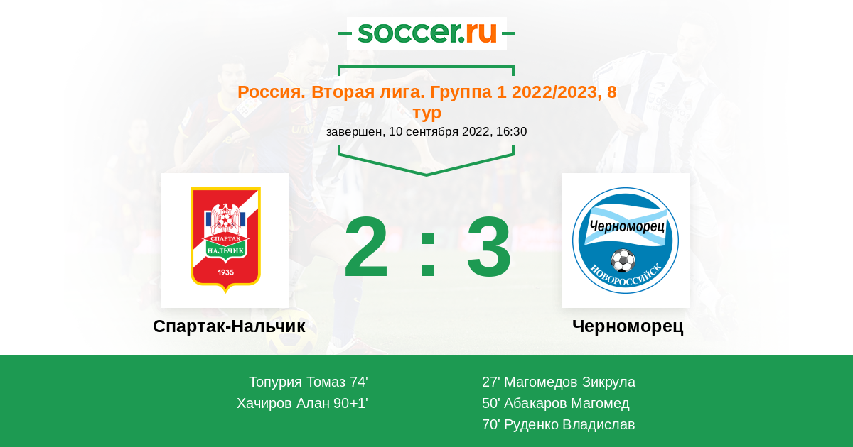 Спартак-Нальчик - Черноморец: обзор матча 10 сентября 2022