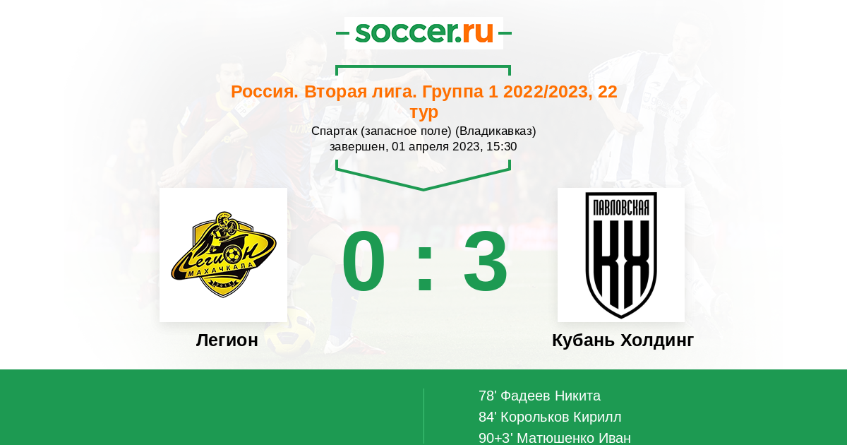 Легион - Кубань Холдинг: обзор матча 1 апреля 2023