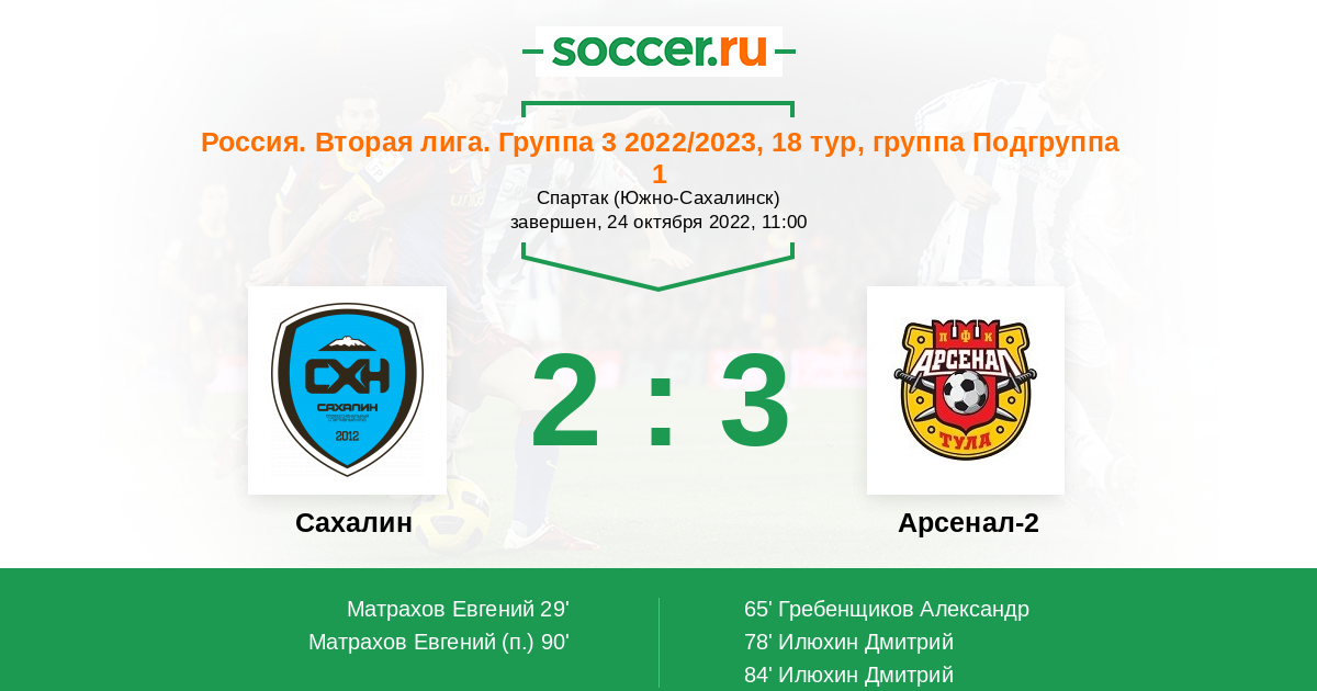 Сахалин - Арсенал-2: обзор матча 24 октября 2022