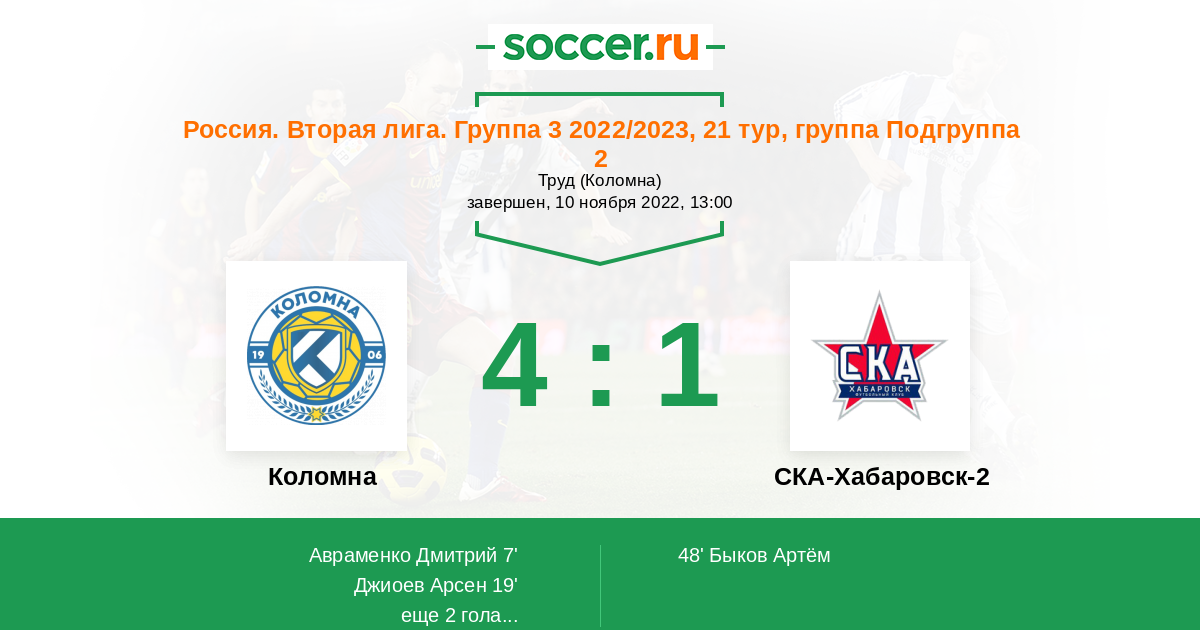 Коломна - СКА-Хабаровск-2: обзор матча 10 ноября 2022