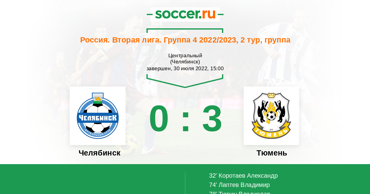 Челябинск - Тюмень: обзор матча 30 июля 2022