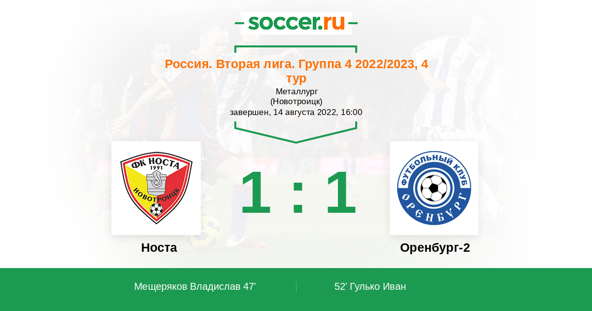 Носта - Оренбург-2: обзор матча 14 августа 2022