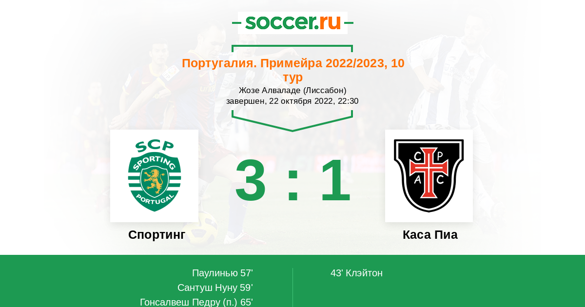 Спортинг - Каса Пиа: обзор матча 22 октября 2022