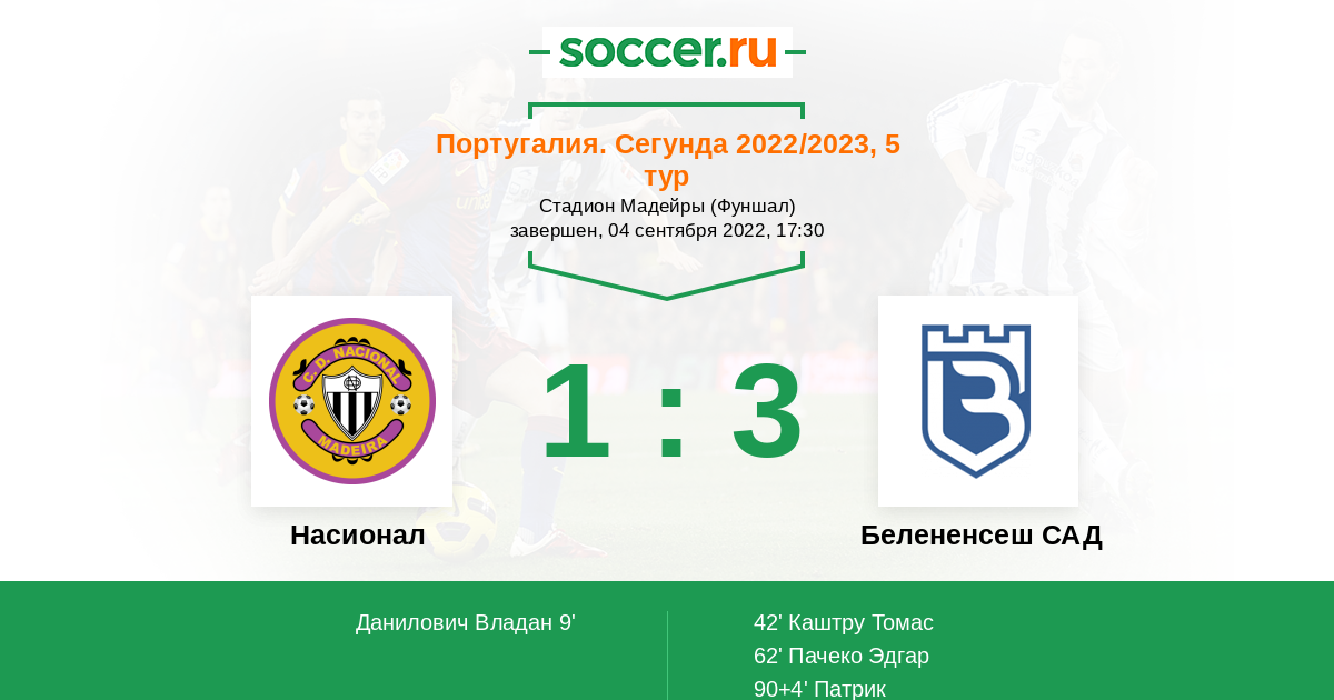 Насионал - Белененсеш САД: обзор матча 4 сентября 2022