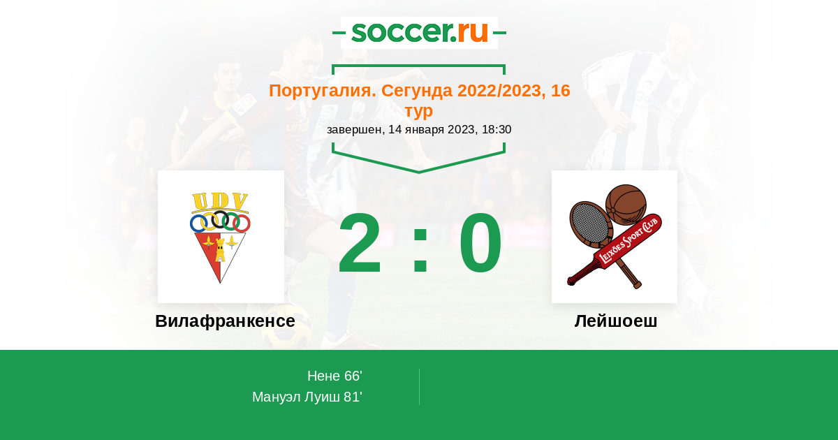 Вилафранкенсе - Лейшоеш: обзор матча 14 января 2023