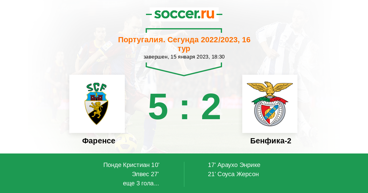 Фаренсе - Бенфика-2: обзор матча 15 января 2023