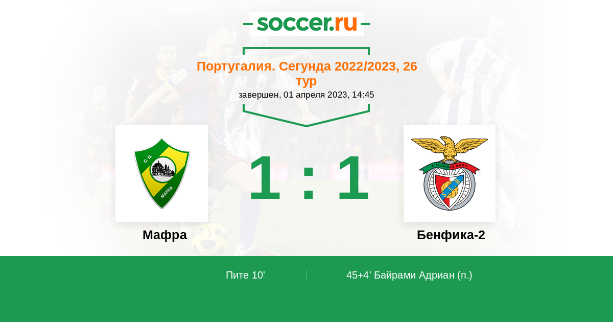 Мафра - Бенфика-2: обзор матча 1 апреля 2023