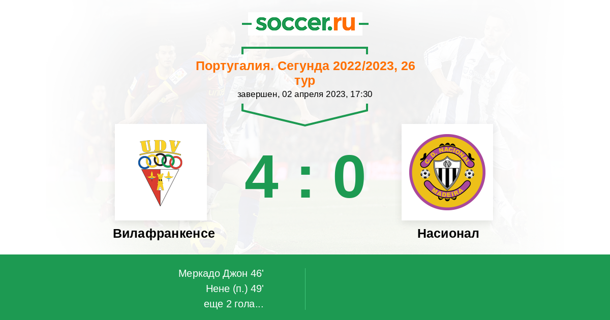 Вилафранкенсе - Насионал: обзор матча 2 апреля 2023