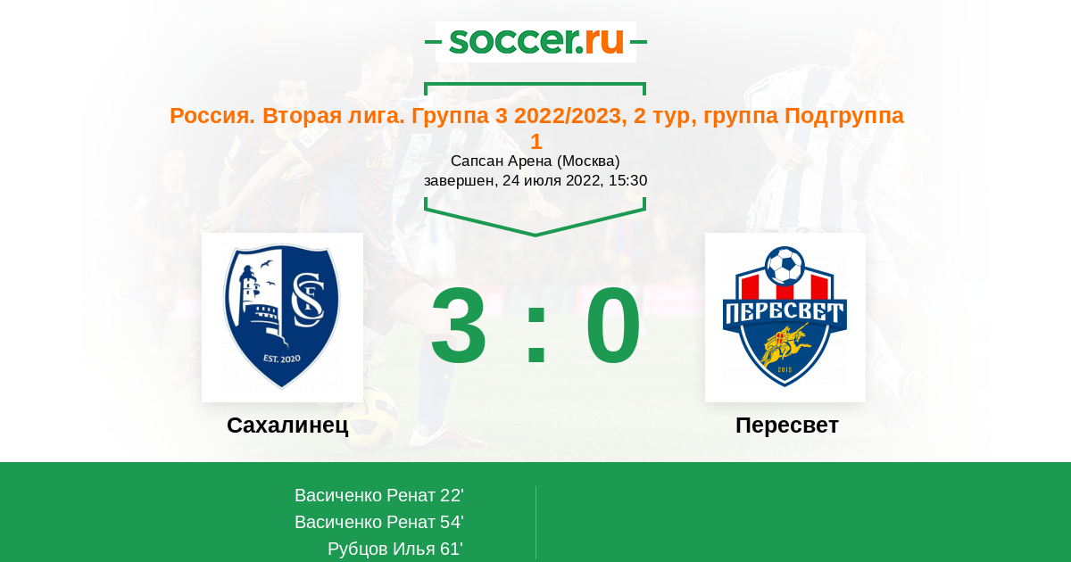 Сахалинец - Пересвет: обзор матча 24 июля 2022