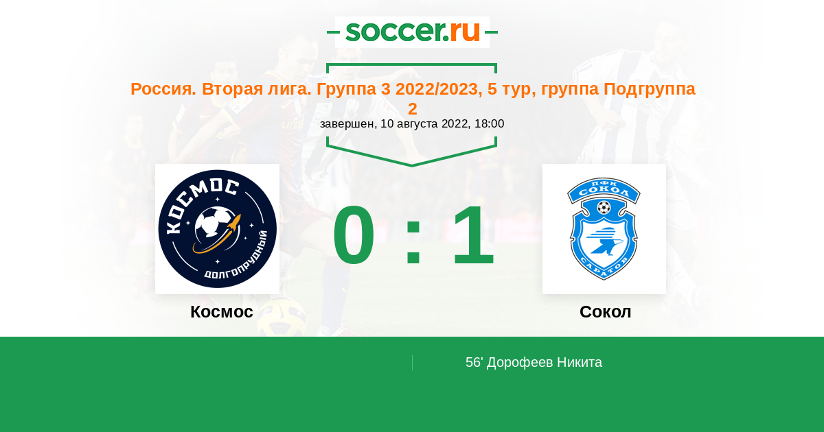 Космос - Сокол: обзор матча 10 августа 2022