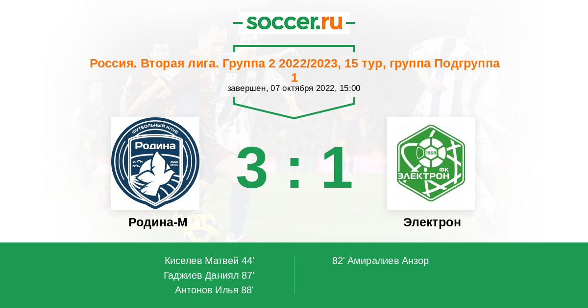 Родина-М - Электрон: обзор матча 7 октября 2022