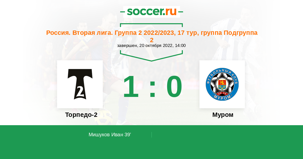 Торпедо-2 - Муром: обзор матча 20 октября 2022