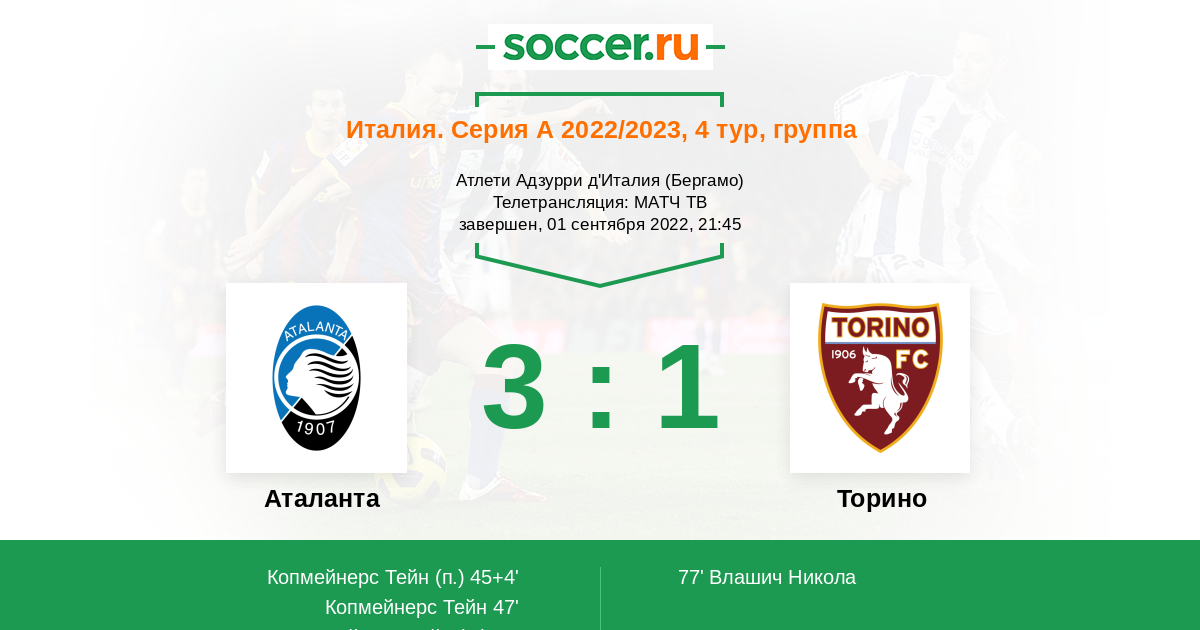 Аталанта - Торино: обзор матча 1 сентября 2022