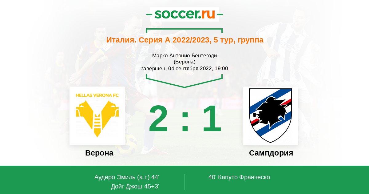 Верона - Сампдория: обзор матча 4 сентября 2022