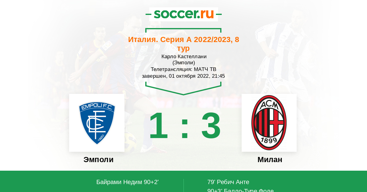 Эмполи - Милан: обзор матча 1 октября 2022