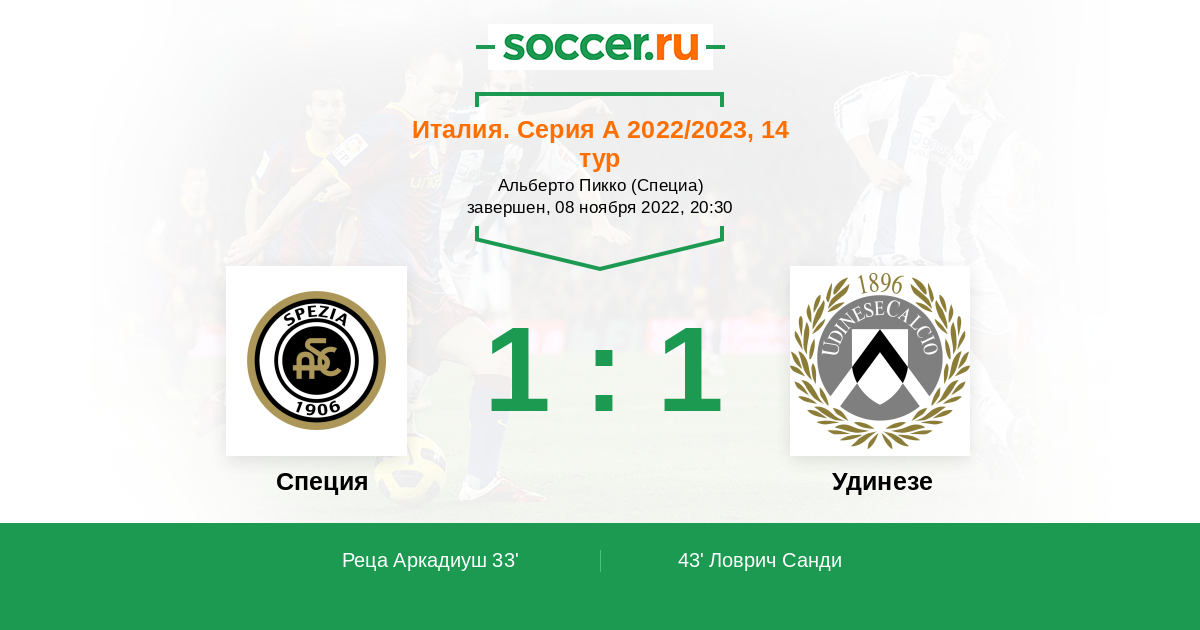 Специя - Удинезе: обзор матча 8 ноября 2022