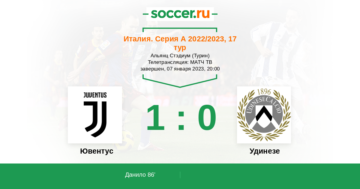 Ювентус - Удинезе: обзор матча 7 января 2023
