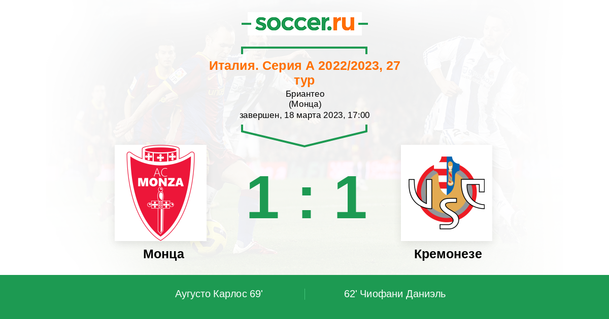 Монца - Кремонезе: обзор матча 18 марта 2023