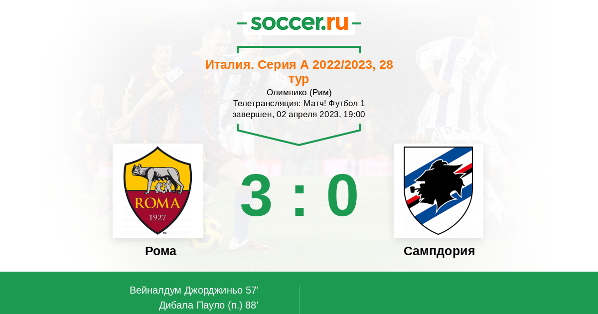 Рома - Сампдория: обзор матча 2 апреля 2023