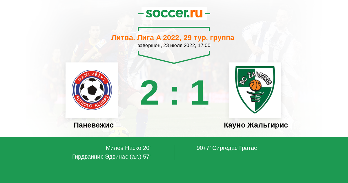 Паневежис - Кауно Жальгирис: обзор матча 23 июля 2022