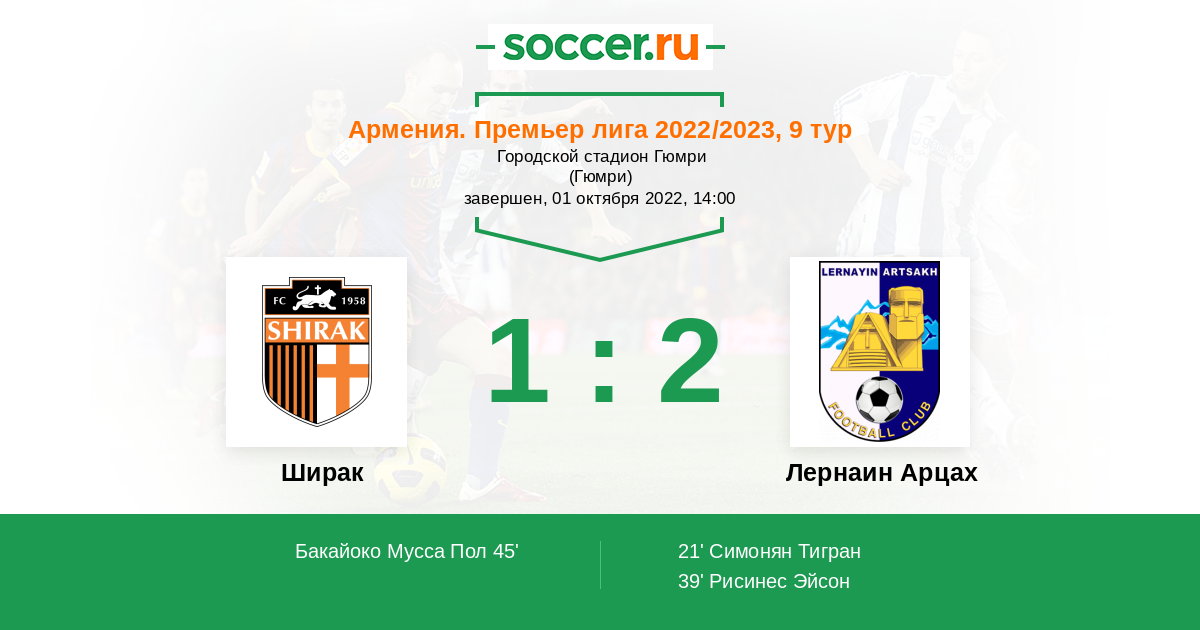 Ширак - Лернаин Арцах: обзор матча 1 октября 2022