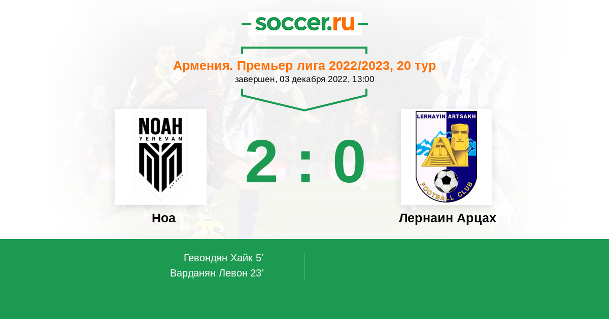 Ноа - Лернаин Арцах: обзор матча 3 декабря 2022