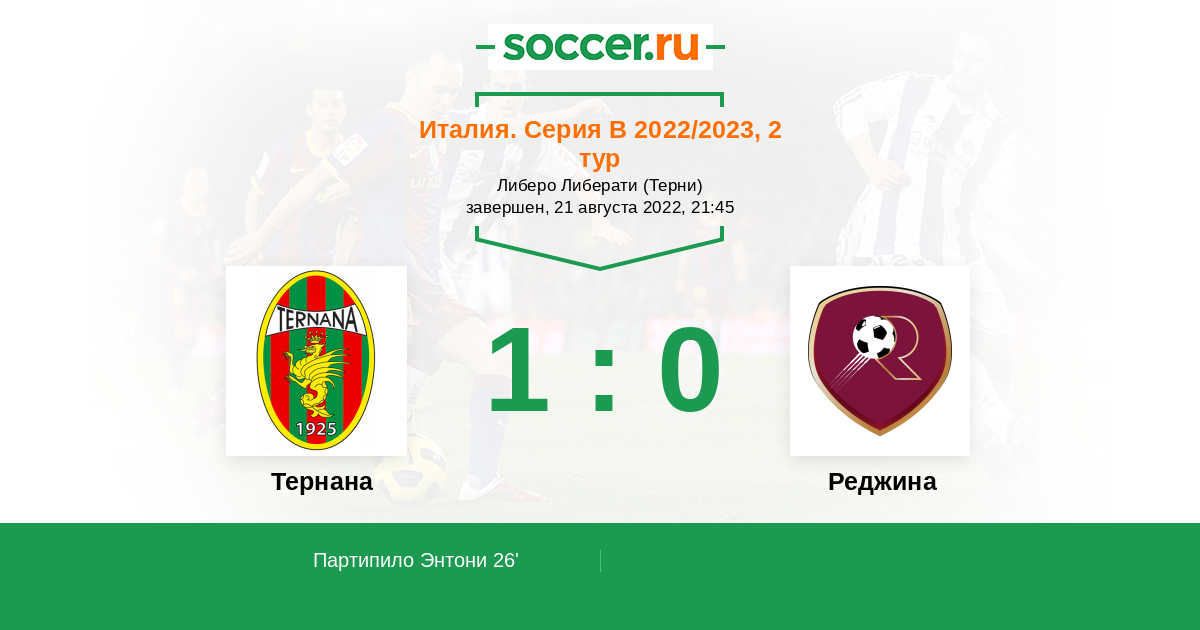 Тернана - Реджина: обзор матча 21 августа 2022