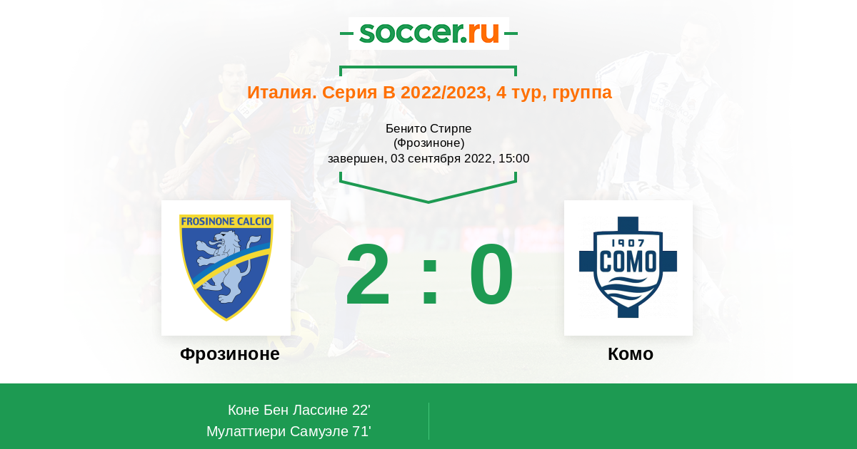 Фрозиноне - Комо: обзор матча 3 сентября 2022