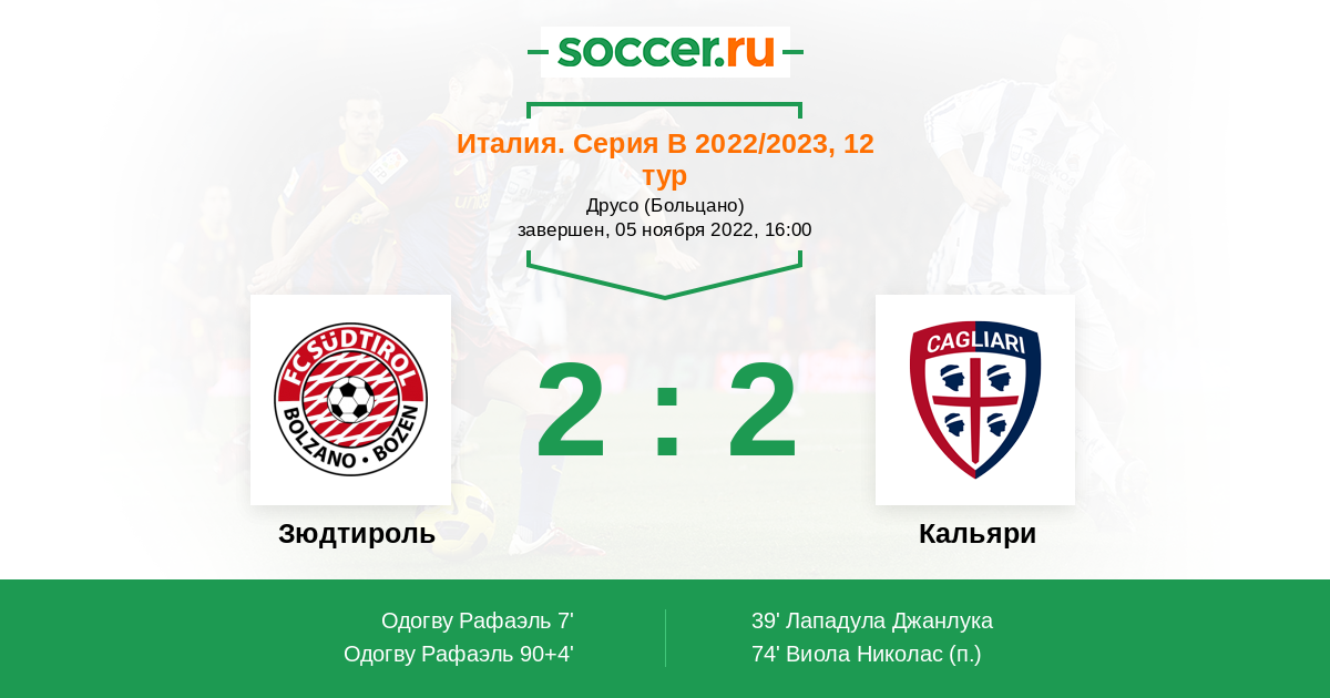 Зюдтироль - Кальяри: обзор матча 5 ноября 2022