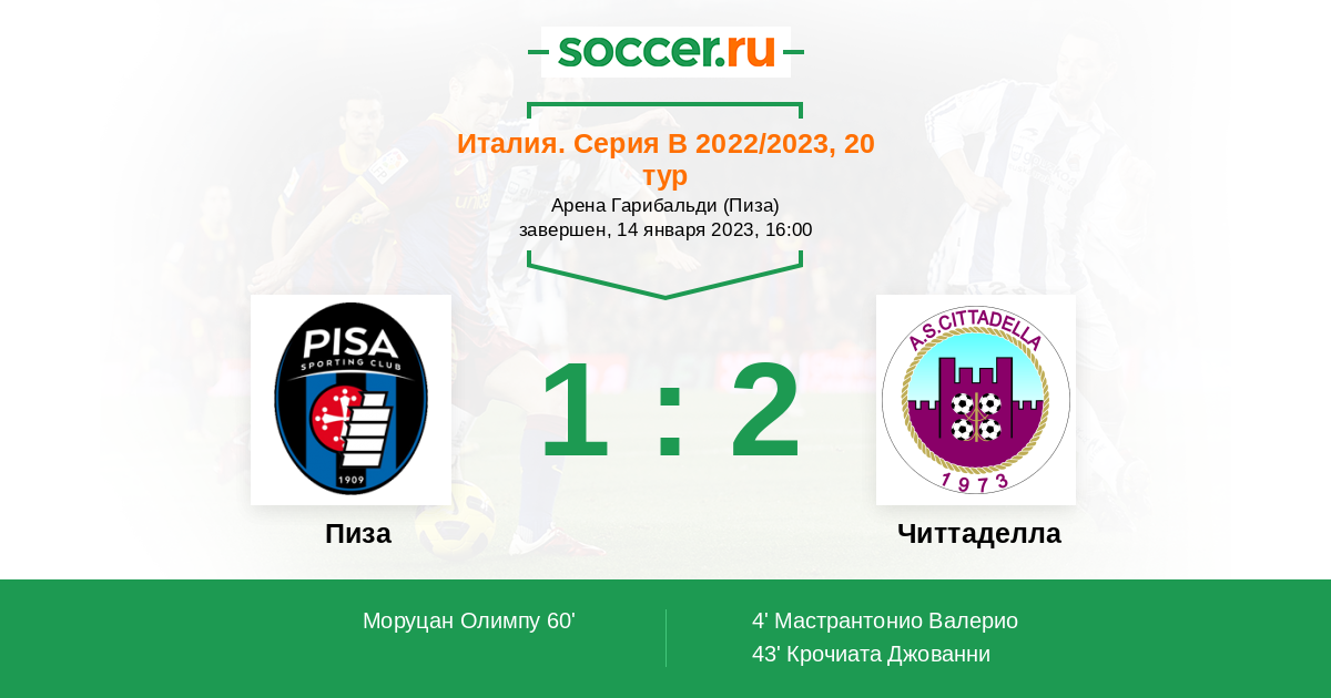 Пиза - Читтаделла: обзор матча 14 января 2023