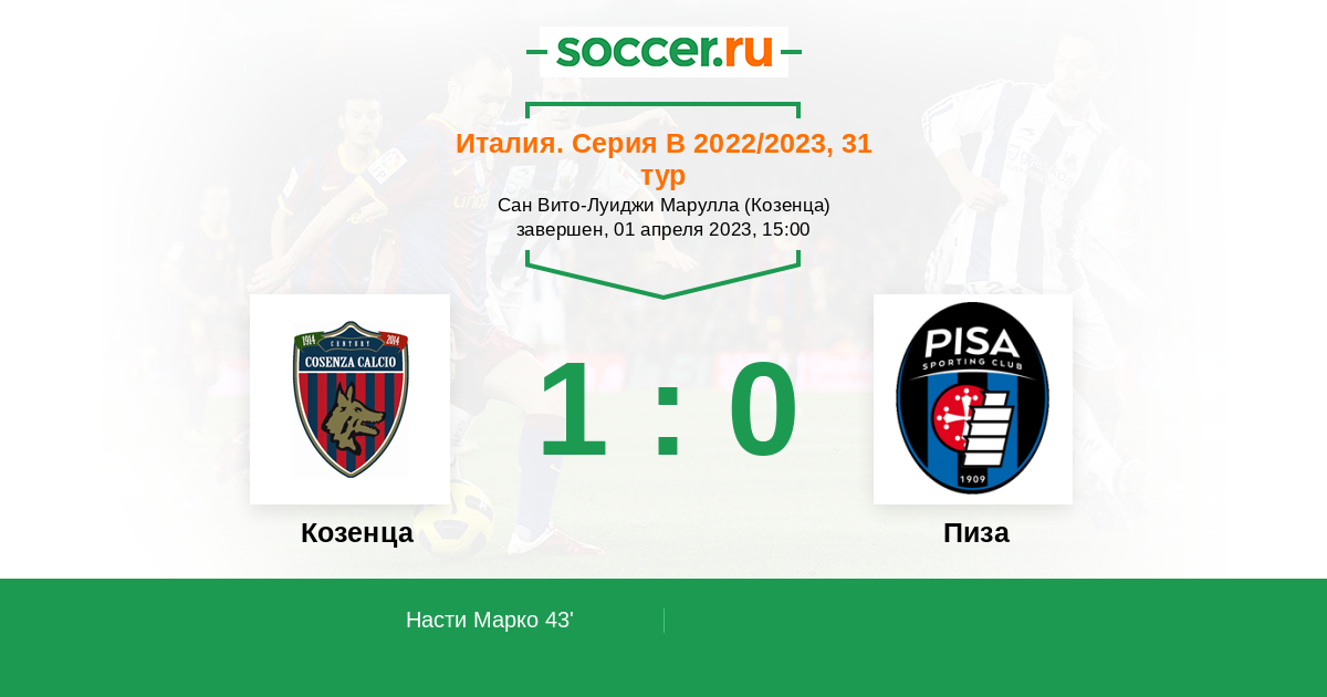 Козенца - Пиза: обзор матча 1 апреля 2023