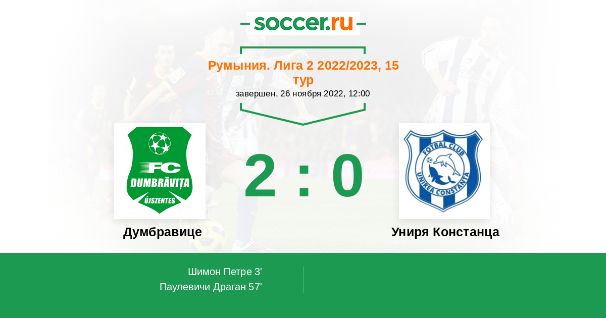 Думбравице - Униря Констанца: обзор матча 26 ноября 2022