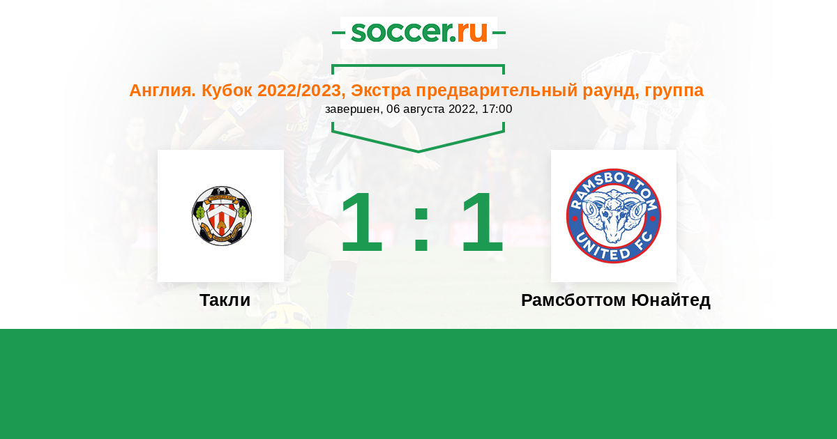 Такли - Рамсботтом Юнайтед: обзор матча 6 августа 2022
