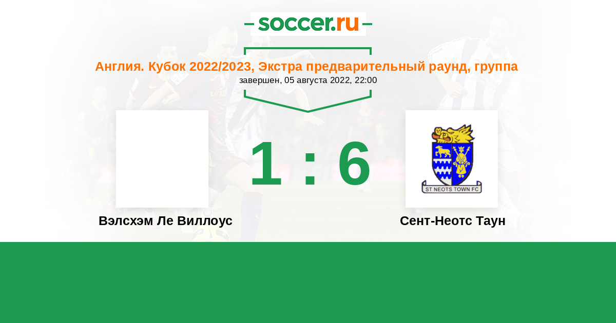Вэлсхэм Ле Виллоус - Сент-Неотс Таун: обзор матча 5 августа 2022