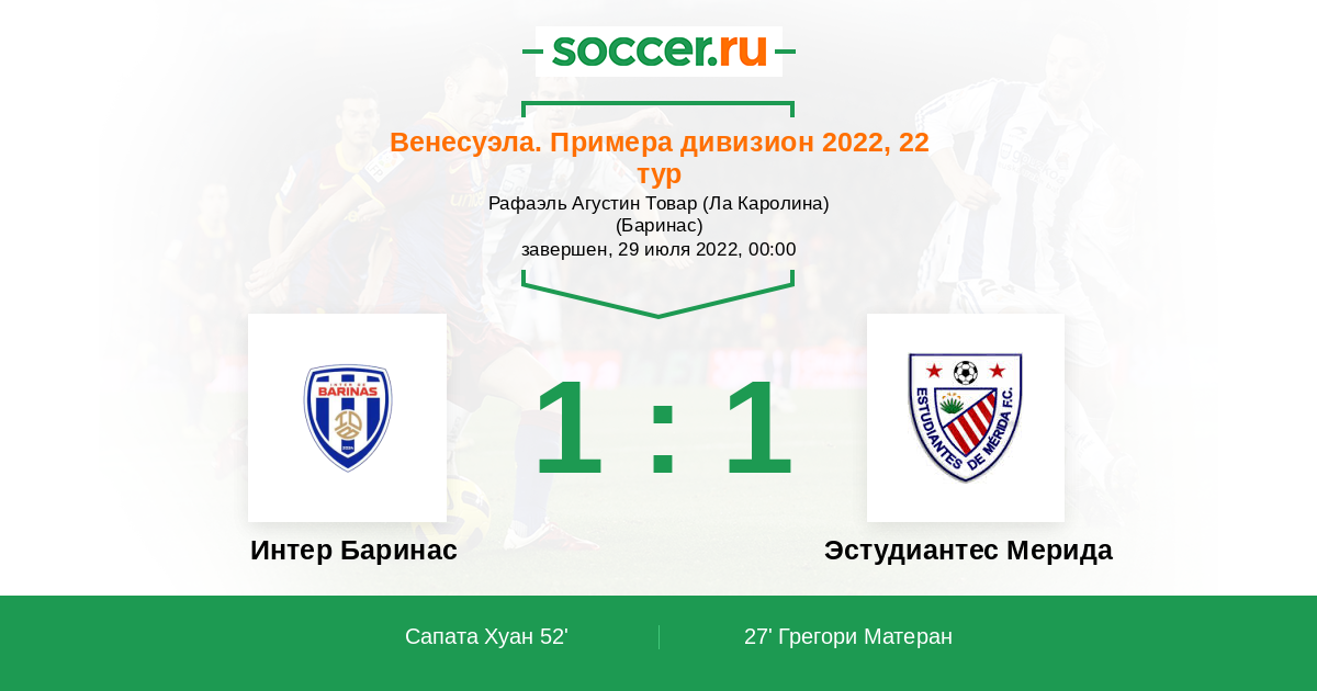 Интер Баринас - Эстудиантес Мерида: обзор матча 29 июля 2022